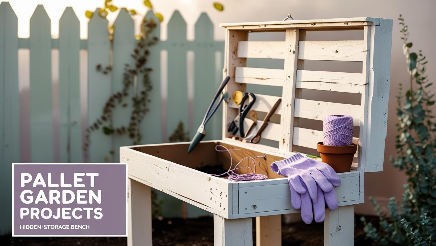 Saw one pallet in half for legs; use a full pallet for the top. Hinge a scrap board onto the back as a lid. Now your trowels disappear faster than last night’s chocolate stash.